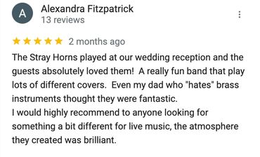 Perfect for adding a unique flair to afternoon wedding drinks or any celebration, The Stray Horns provide a personal and unforgettable experience. With a versatile repertoire ranging from jazz and pop to soulful classics, our music flows seamlessly with the vibe of your event, creating memories that last a lifetime. If you’re looking for a band that does more than just play music, but truly entertains and interacts,.